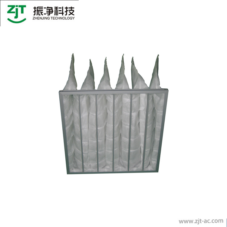 本公司采用的濾材為三層濾料均勻熱熔粘合。第一層粗纖維過濾棉捕捉空氣中較大的塵埃,較細(xì)的纖維濾紙捕捉空氣中較小的塵埃,最外層無紡布為強(qiáng)化保護(hù)層。合理的三層設(shè)計(jì)使產(chǎn)品具有優(yōu)良的性能,牢固的熱熔技術(shù)避免了風(fēng)壓產(chǎn)生的泄露,隔網(wǎng)避免了袋與袋之間的貼合,更加細(xì)化了送風(fēng)區(qū)域,降低了阻力,并使容塵量達(dá)到了最大。